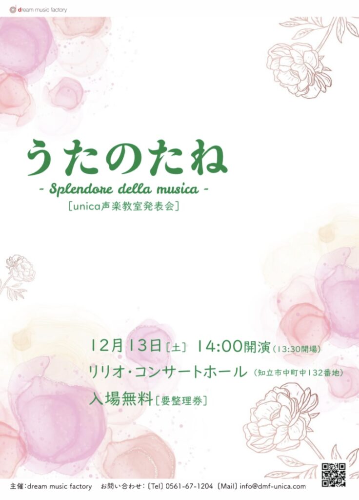 UNICA声楽教室の公式LINEでは、レッスン情報や発表会のお知らせ、